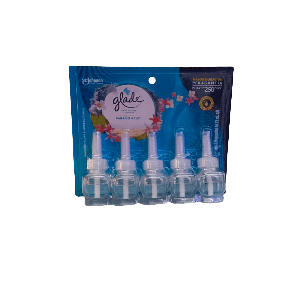 Aceite Natural Paraiso Azul Glade: pack de 5 repuestos de 21 ml cada uno.