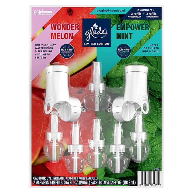 Aceite Perfumado Wonder Melon y Empower Mint 2 calentadores + 6 recambios Glade PlugIns