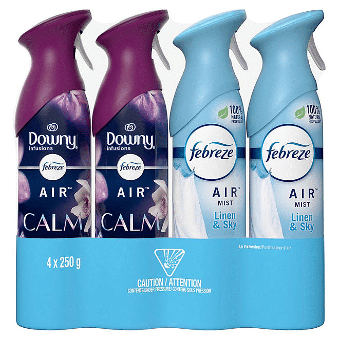 Ambientador Efectos de Aire: 250 gr x 4 pack, Febreze + Downy.