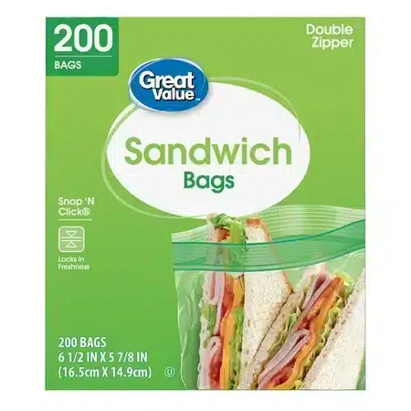 Bolsas para sándwich con doble cremallera 200 unidades Great Value: mantén tus alimentos frescos y protegidos.