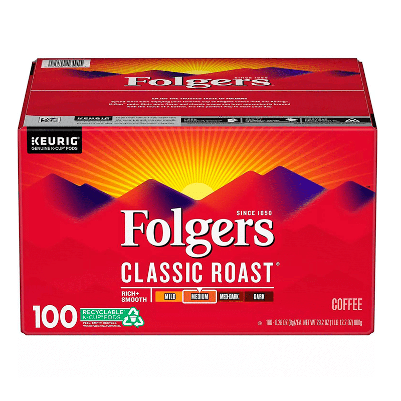 Cafe Classic Roast Coffee K-cups x 100 Cups Folgers: sabor clásico en cada taza, paquete económico.