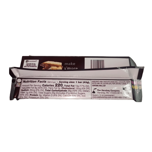 Chocolate con Leche 43g Hershey’s: Delicioso chocolate con leche en barra de 43g.