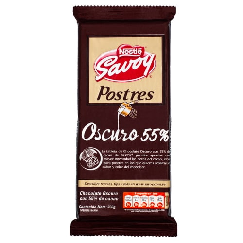 Chocolate Oscuro Postre 55% 200gr Savoy