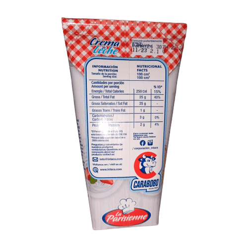 Crema De Leche 200 ml Parisienne: suavidad y cremosidad en cada envase.