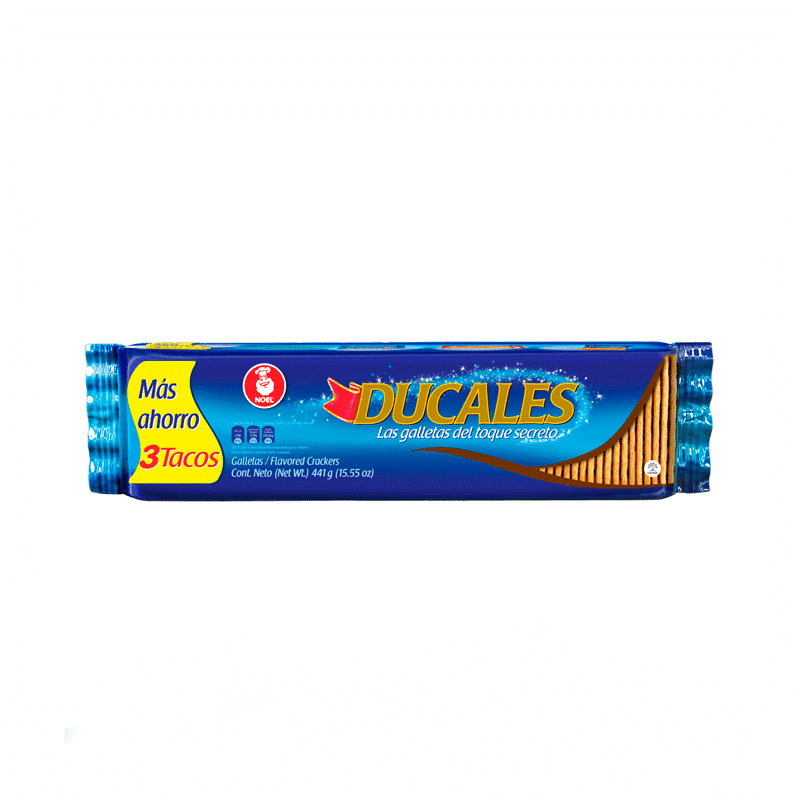 Galletas Ducales 441 gr 3 Tacos Noel es un producto de galletas saladas muy popular, elaborado con ingredientes naturales de alta calidad. Cada paquete contiene tres paquetes de galletas de 147 gramos, ideales para compartir con familiares y amigos. Estas galletas tienen un sabor crujiente y único que las hace perfectas para acompañar cualquier comida o como snack en cualquier momento del día.