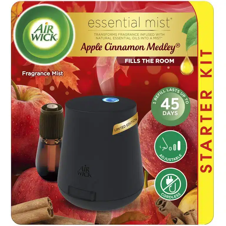 Kit de Niebla Ambientador Esencial de Manzana y Canela de Air Wick: difusor y recarga para crear un ambiente acogedor. Fragancia de manzana y canela. Fácil de usar y recargable. ¡Disfruta de una experiencia aromática única en tu hogar!