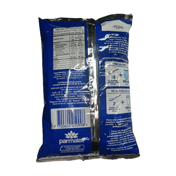 Leche en polvo Fortificada con Hierro 900g Parmalat: Leche en polvo fortificada con hierro de la marca Parmalat en presentación de 900g.