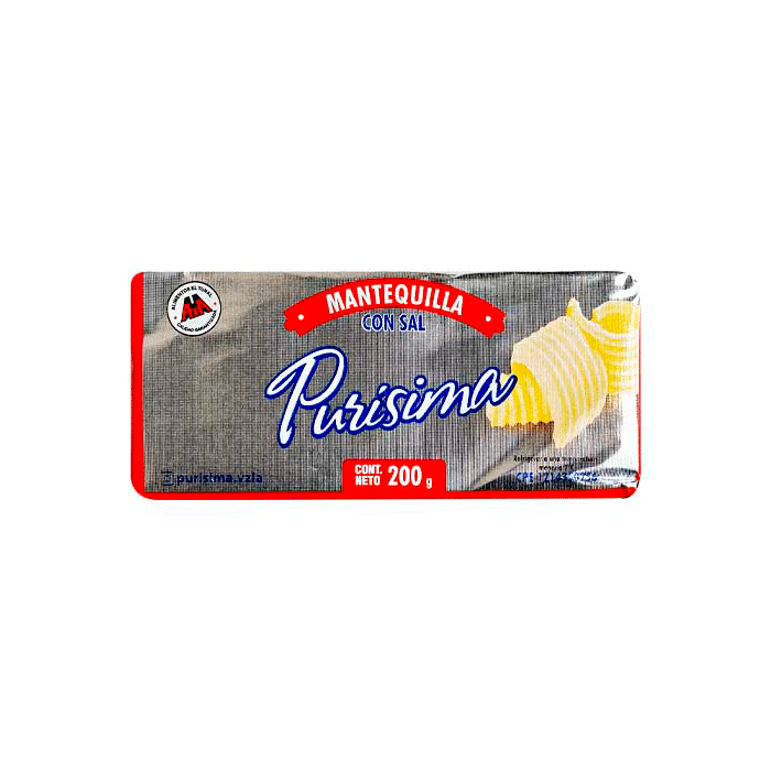 Mantequilla con Sal Purísima 200g: Mantequilla con sal de la marca Purísima en envase de 200 gr. Perfecta para dar sabor a tus platos.