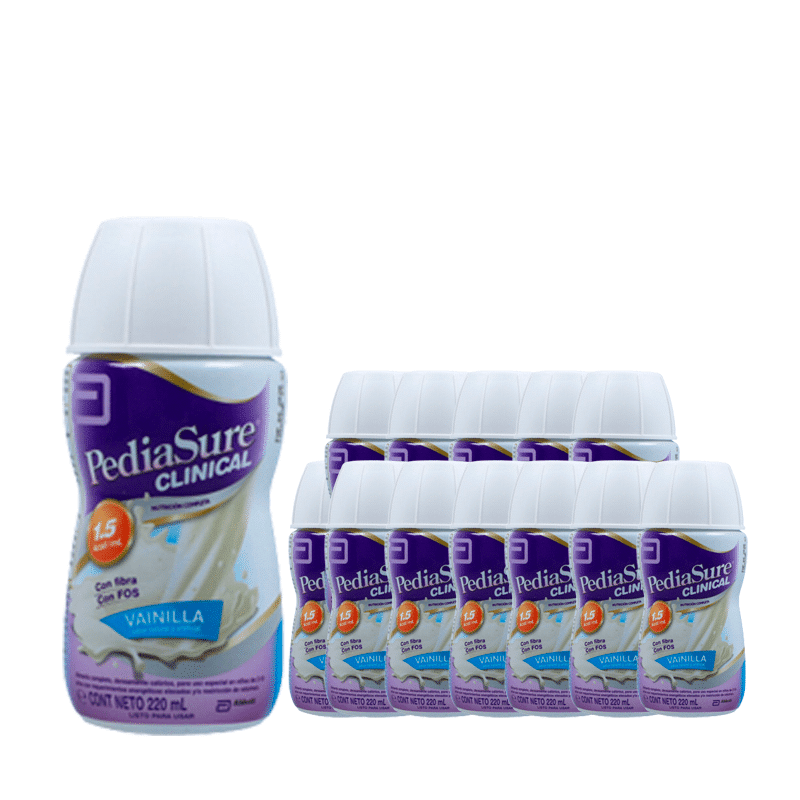 Pediasure Clinical Sabor Vainilla 220ml x12: Caja con 12 botellas de Pediasure Clinical con delicioso sabor a vainilla, cada botella de 220ml.