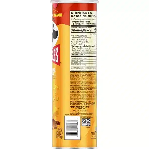 Pringles Sabor a Queso 158 gr: Papas Pringles con delicioso sabor a queso, en envase de 158 gr. Un tentempié sabroso y crujiente.