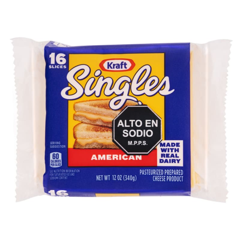 Queso amarillo Kraft: 24 slices individuales de 450 gramos.
