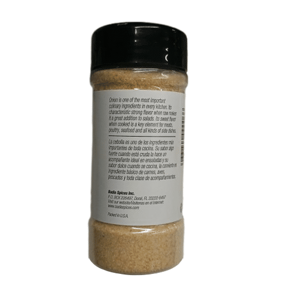 Sal de Cebolla 4.5Oz/127.6g: Envase de sal de cebolla Badia con contenido de 127.6g.