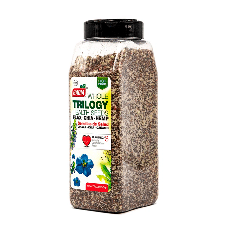 Semillas de salud Linaza-Chia-Cañamo Badia 595.3g: Bolsa de mezcla de semillas de salud Badia, contenido de 595.3g.