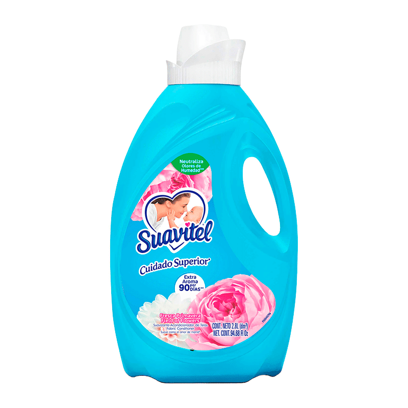 El Suavizante Suavitel 2.8Lt Fresca Primavera es un producto de alta calidad diseñado para brindar frescura y suavidad a la ropa. Con una capacidad de 2.8 litros y un peso de 4 libras, este suavizante es perfecto para mantener tus prendas frescas y suaves durante más tiempo.