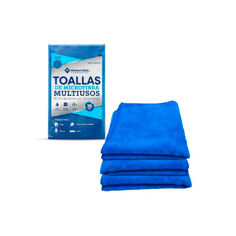 Toallas Multiuso de Microfibra Celeste 40.64×40.64 36Pack Members Mark